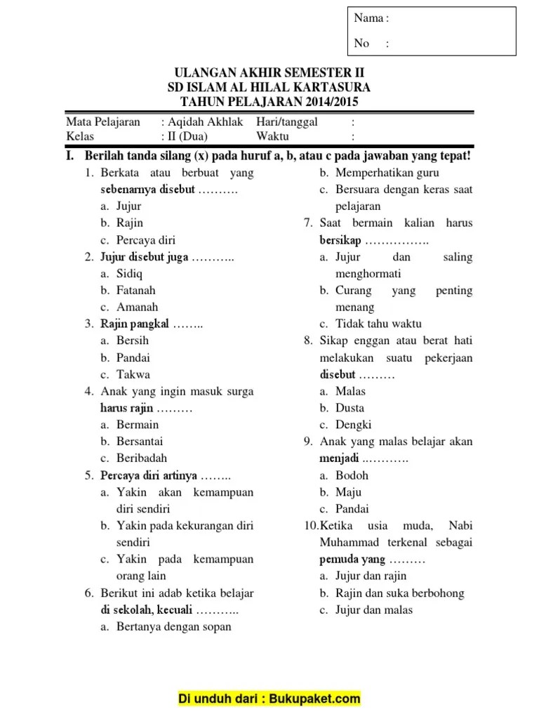 Soal Ukk Qurdis Kelas 1 Sd : Soal Pat Al Qur An Hadits Kelas 10 K13 Jawaban Tahun 2021 - Berilah tanda silang (x) di depan huruf a,b atau c .